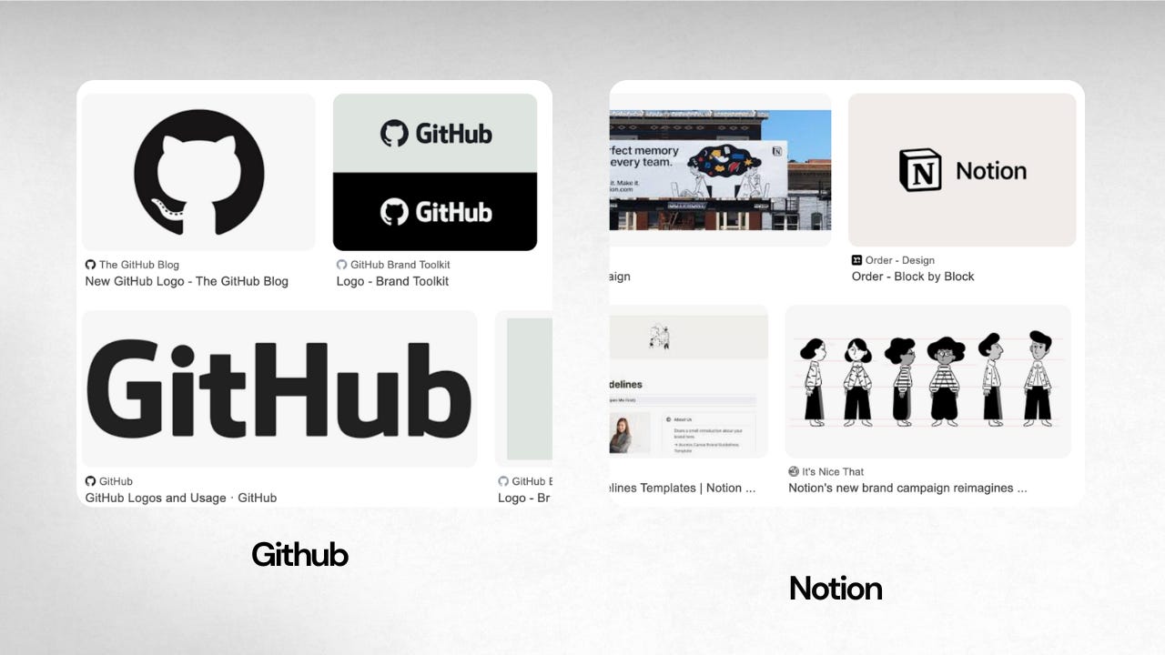 Conclusão prática: precisamos de uma marca que seja muito diferente do Notion (preto e branco, aqueles personagens característicos) e do GitHub (preto, azul escuro, visual de ferramenta para devs). Ao mesmo tempo, precisa ser reconhecível como uma ferramenta de tecnologia.