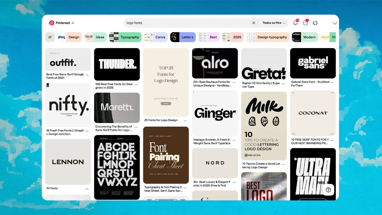 Buscar referências — logos, tipografias, cores e imagens que você gosta na internet
